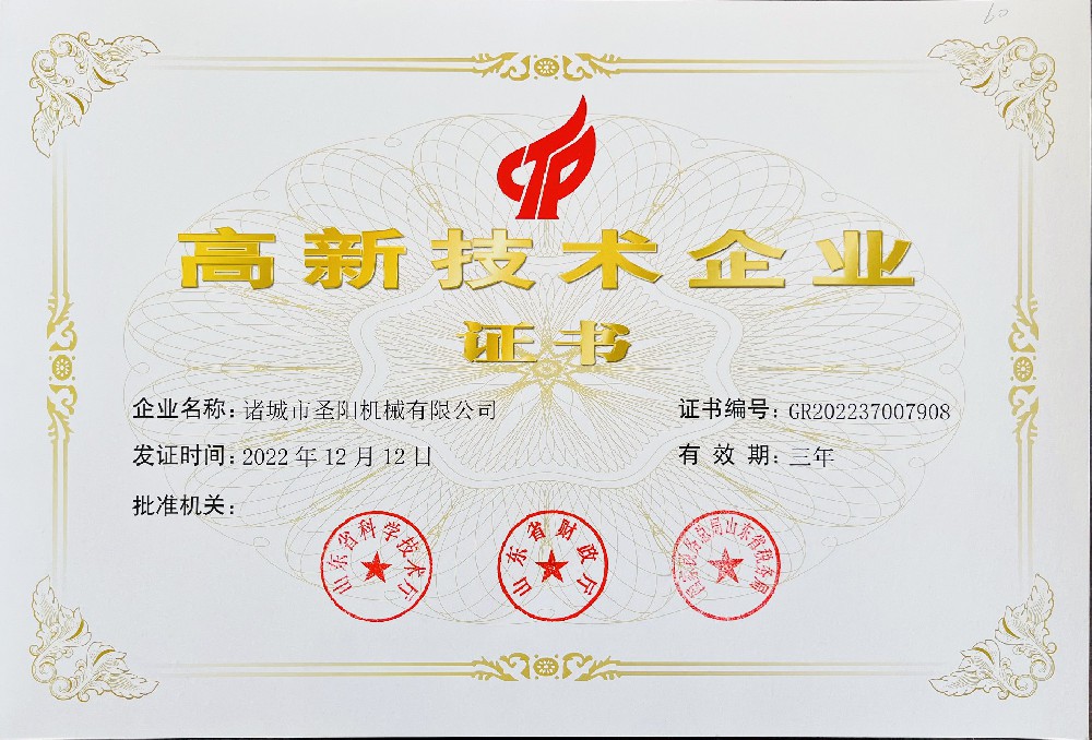喜報!諸城圣陽機械被評為高新技術(shù)企業(yè)喜報!諸城圣陽機械被評為高新技術(shù)企業(yè)查看詳情 -